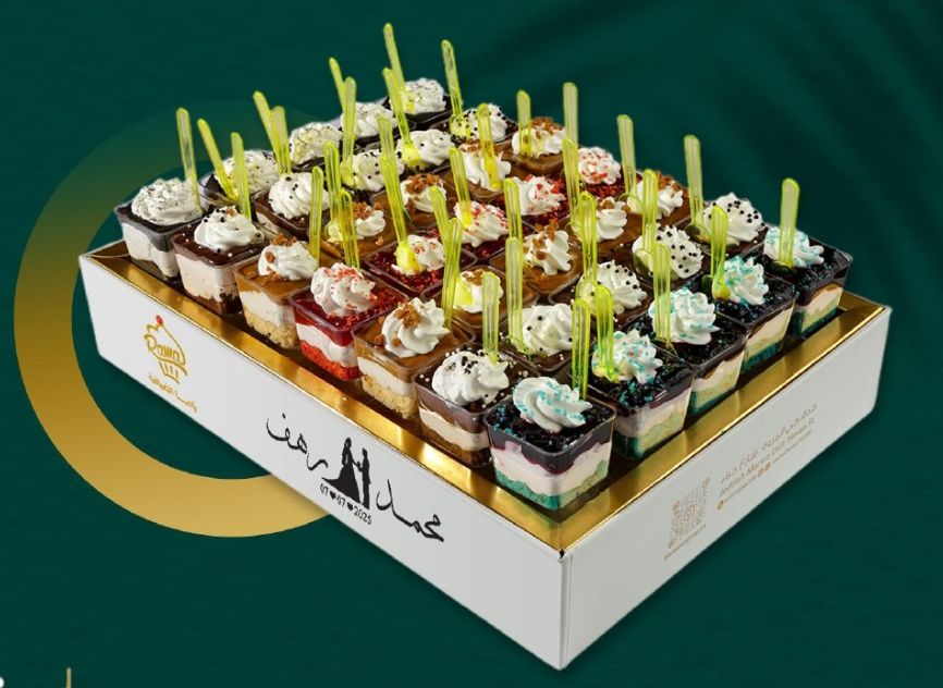 مكون من : كاسات تشيز فيرين بحشوات لذيذة ومتنوعة ؛ شوكولاة، روز بيري ، بلو بيري ، لوتس ، أوريو.